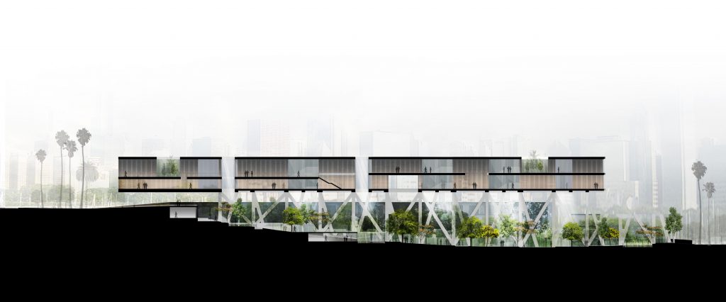 为综合体做战略性分析和概念设计。该建筑是对基地形式的直接反映。它确认为通往纪念画廊的走廊,是基于可持续发展的基础上创造柔和的自然环境。