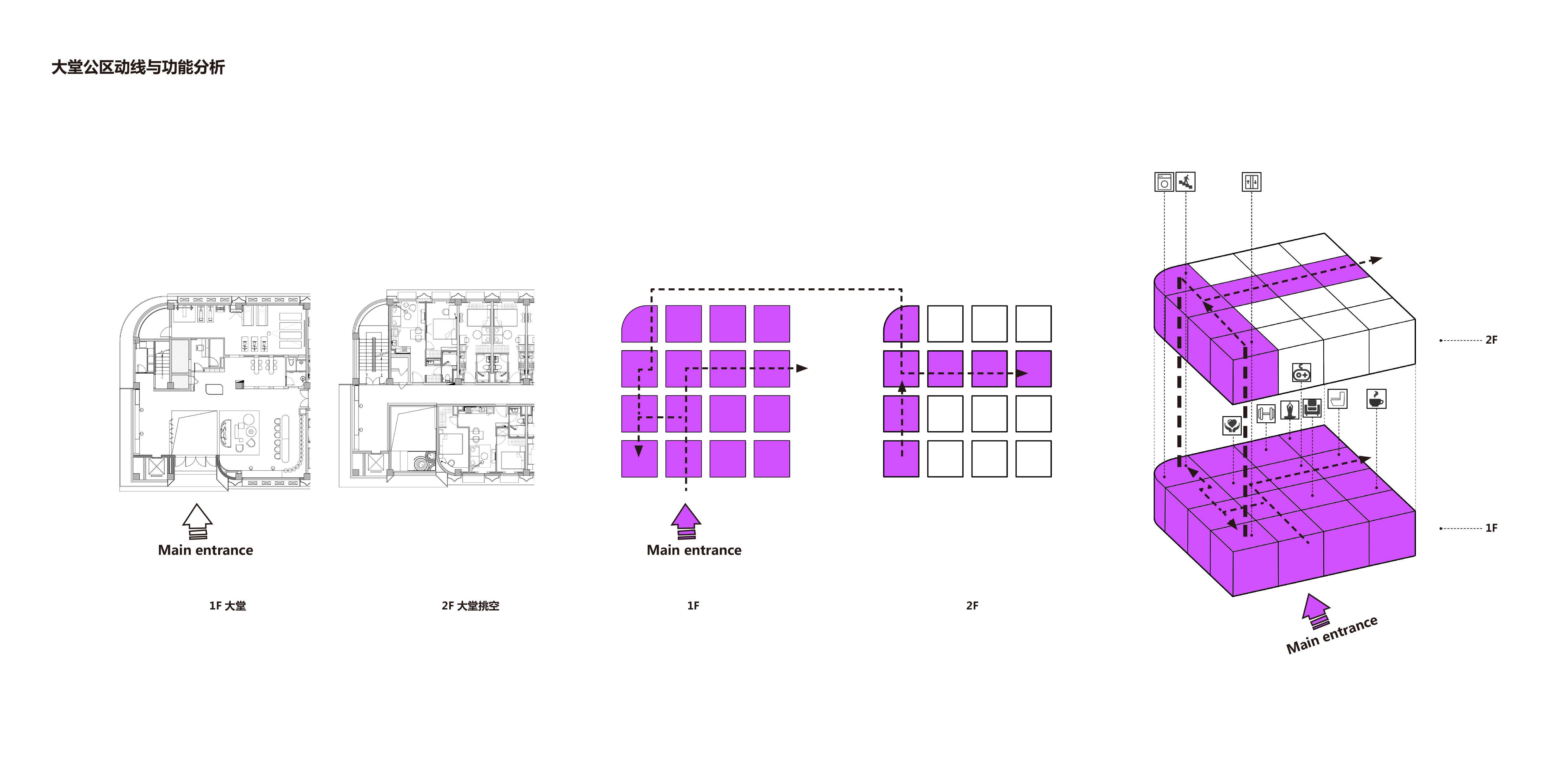 功能包括接待台、休闲区、水吧台、健身房、洗衣房、等候区等,兼具社交性及多功能性,可作为临时的活动场所,如路演及分享会场所。