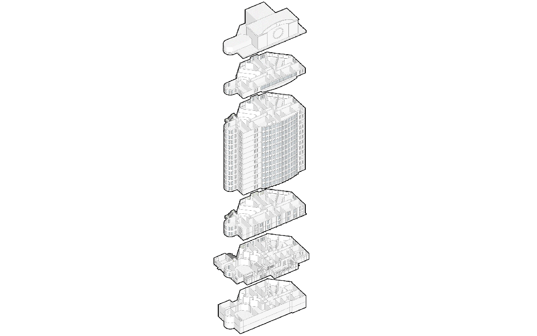 LOD have created a simple, timeless and elegant architectural space. Translating the building’s elegant elements into facade with minimalist silhouettes and graphics.