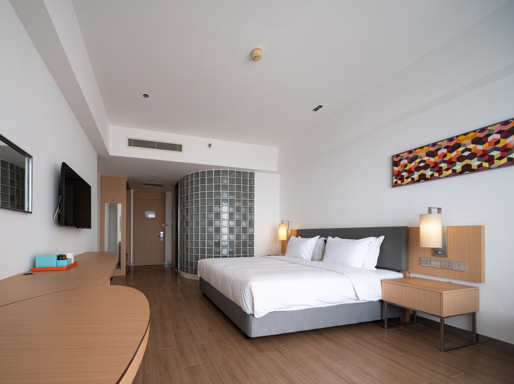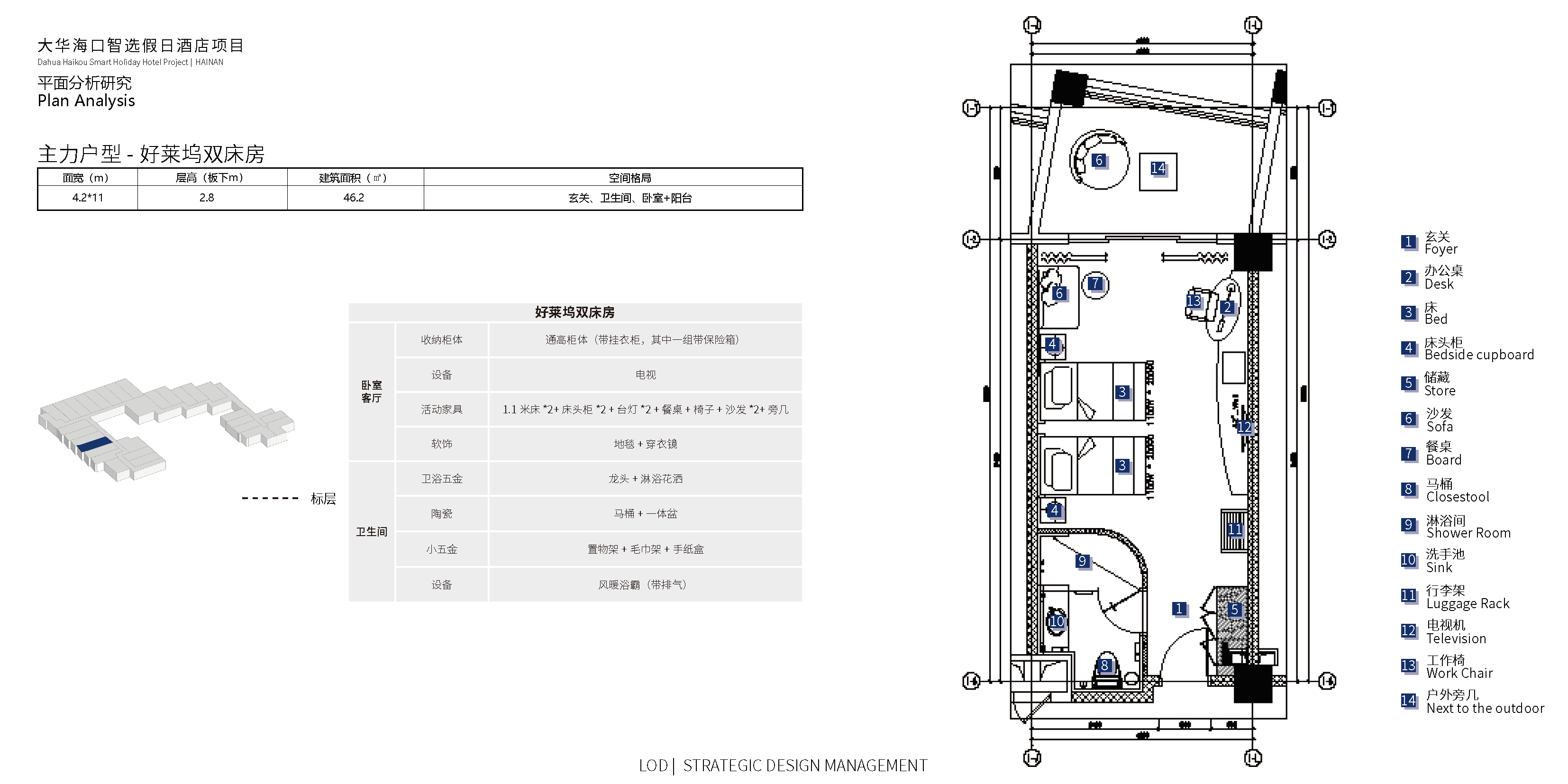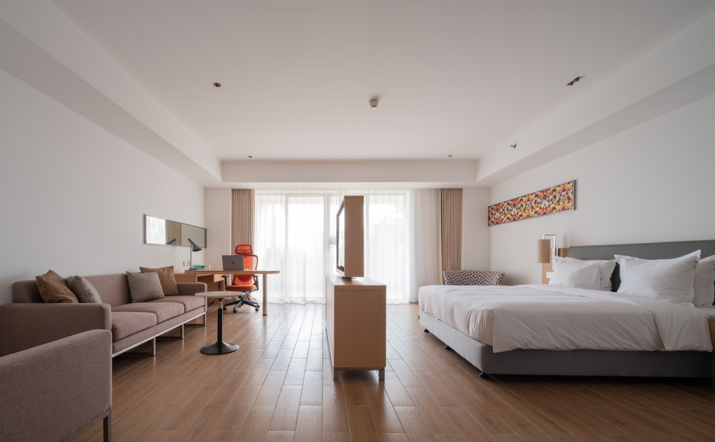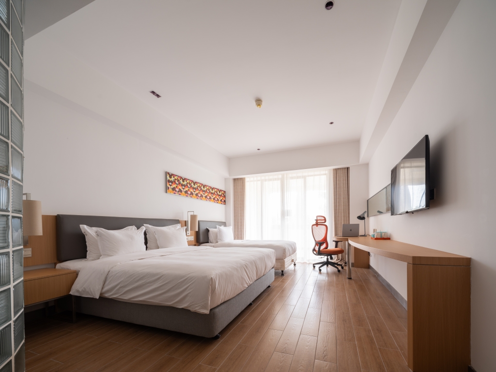 项目一共4种户型模块,包括标准大床房SK (36间 )、标准双床房ST(29间)、好莱坞双床房 HT(34间),以及复式大床房KL(8间) ,共107间房间。 单间和好莱坞双床房为主力房型,每种房型各具特色,满足不同使用客群需求。