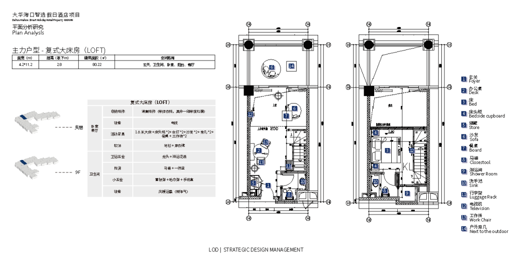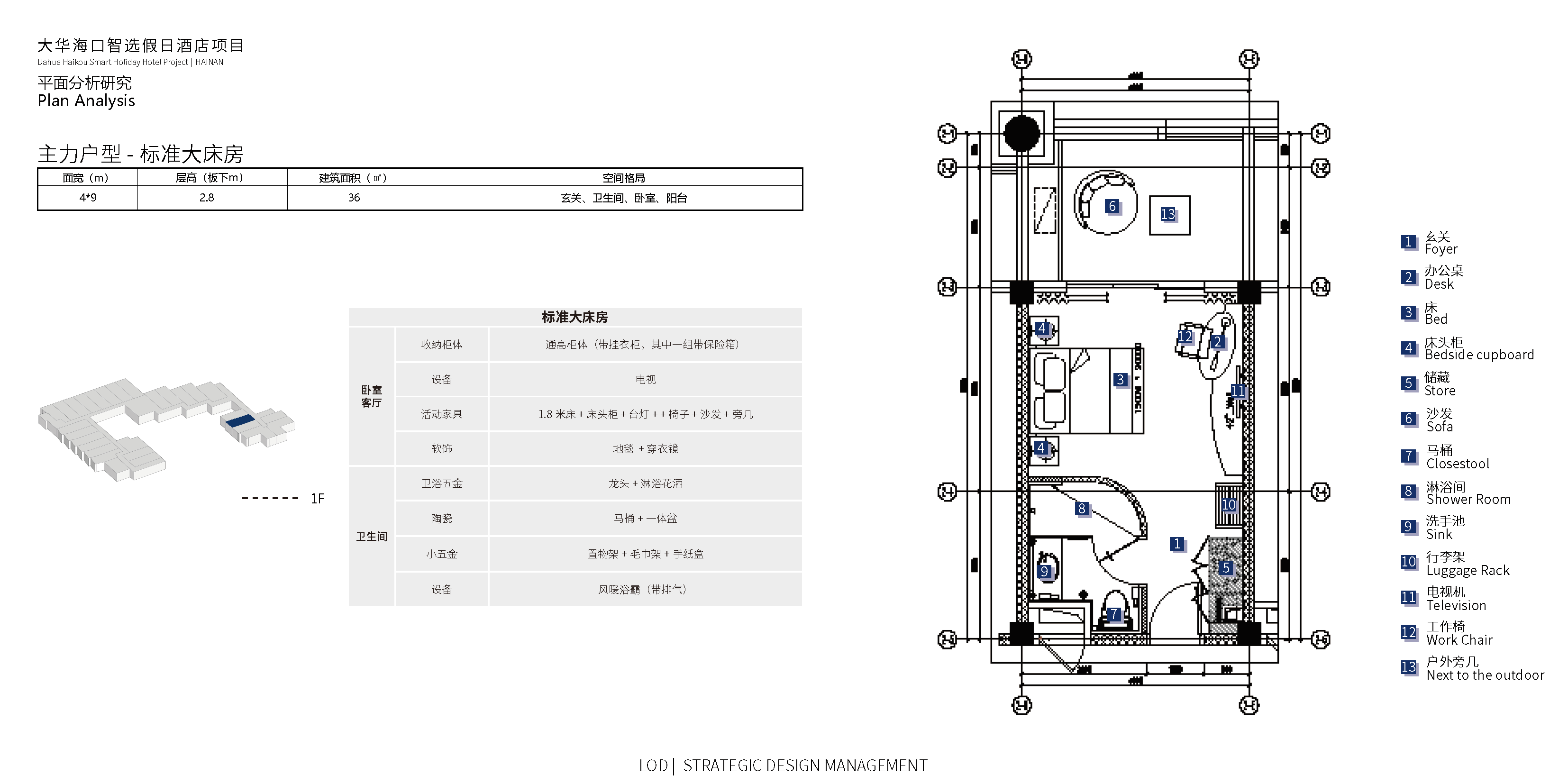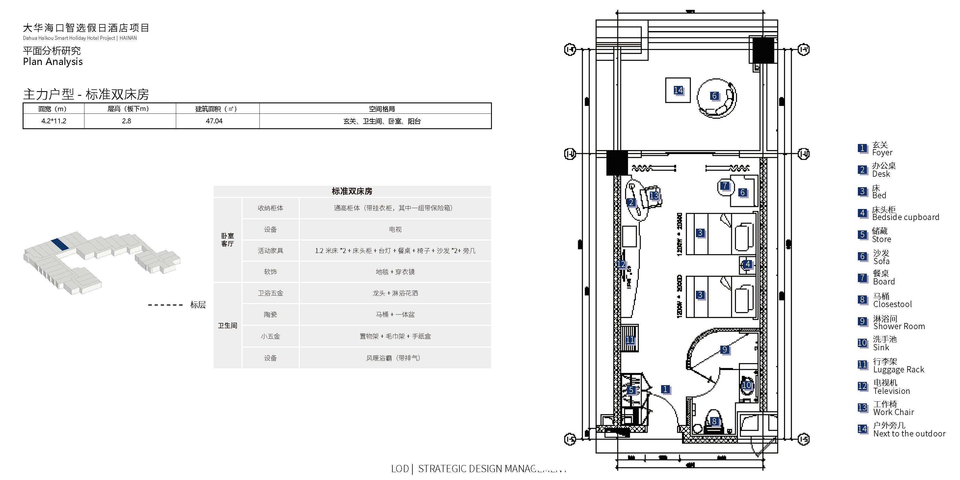 项目一共4种户型模块,包括标准大床房SK (36间 )、标准双床房ST(29间)、好莱坞双床房 HT(34间),以及复式大床房KL(8间) ,共107间房间。 单间和好莱坞双床房为主力房型,每种房型各具特色,满足不同使用客群需求。