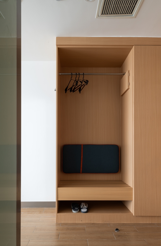 大堂有茶水自助功能,并配有休息沙发区及座椅区以及吧桌区,通过大堂向内延伸,可分别到达早餐厅、卫生间、健身房及洗衣房;
